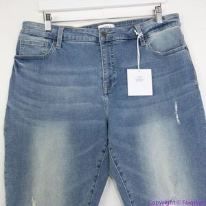 NEW Pistola women's plus size cropped cuffed distressed jeans in better half wash, 18W, style# p67297mtw-BTH. Medium blue wash. Raw hem, designed to be cuffed.