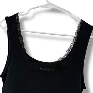 NEW Planet Heart Black Rubbed Tank Top Size Large Lace Trim Cinched crop
