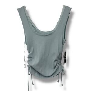 NEW Planet Heart Dusty Blue Tank Top Size Medium Ruched Cinched Side Lace Trim
