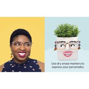 Use dry-erase markers to give the Face Plant personality! Doing so makes boring potted indoor houseplants 20% less boring instantly. (pen and glasses not provided, use your own!)