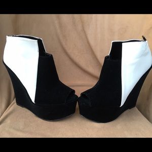 These are NWT Qupid Black and white peep-toe platform shoes! They are gorgeous! There is a small mark on one of the shoes see last photo!