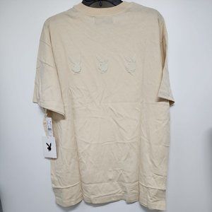 NEW Playboy Pacsun Puff Logo Tee Shirt Men's Size Large Ivory short sleeve NWT