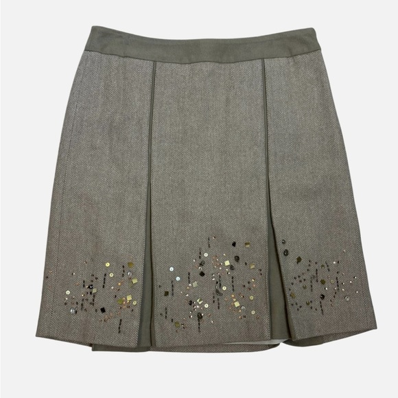 NEW Pleated Wool Blend Skirt Beaded Sequins 10P Academia Preppy Office MSRP$69