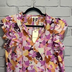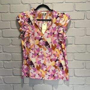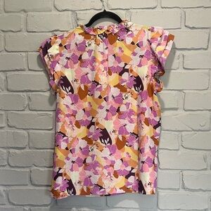 NEW Pleione Floral Ruffle Sleeve Blouse - Pink and Yellow size M