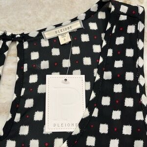 NEW Pleione | Sleeveless Tunic Blouse | Black & White with Red Accents | Small