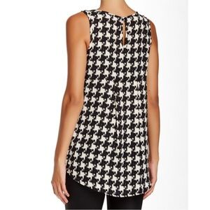 Style Tags: #Pleione #TunicTop #SleevelessStyle #ModernPrint #BlackAndWhite #PopOfRed #BusinessCasual #SmartStyle #ChicBasics #NWT