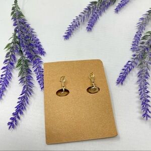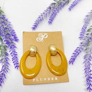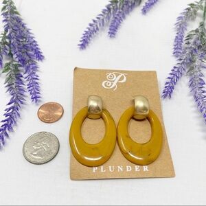 Brand new on card Plunder Design butterscotch marbled acrylic and gold door knocker style pierced drop earrings