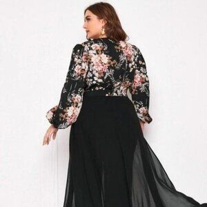 NEW Plus Floral Print Lantern Sleeve Wide Leg Jumpsuit With Skirt Women's Size 2
