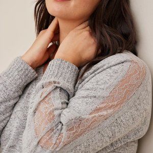 NEW Plus Size 5X Torrid Super Soft Gray Sweater Plush V-Neck Lace top shirt