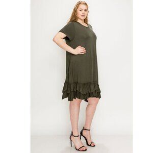 NEW Plus Size Ruffle-trim Georgette Swing Dress Olive color