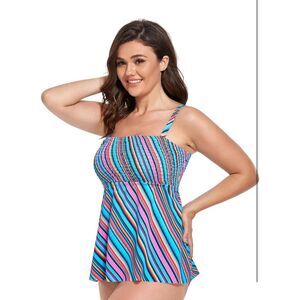 ☼Plus Swimwear Women: Women plus size swim top, bandeau neckline; removable shoulder straps offer two style options wear as a tank or bandeau; encirled shelf bra with soft wire free cups provide extra bust support and comfortable;