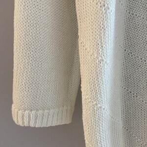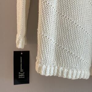 NEW INC brand garden party bright white linen blend sweater. Long sleeves wide scoop neck rounded bottom. Beautiful knit design.