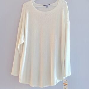 NEW Plus size sweater pullover INC Garden Party bright white linen blend 3X C