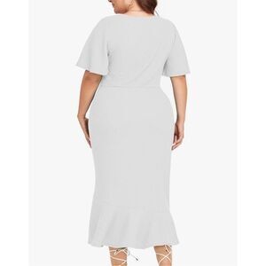 Mosest Design -- Women plus size casual dress with wrap v neck, ruched front design, ruffle wide short sleeve, strechy bodycon fit and charming mermaid hem design is perfect for most body shapes and offer more femininity.