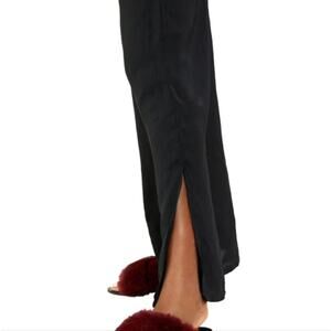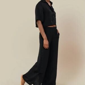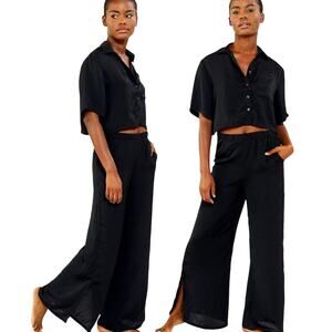 NEW Plush Apparel Revolve Black Faux Silk Satin Crop Top Wide-Leg Pants Set (M)