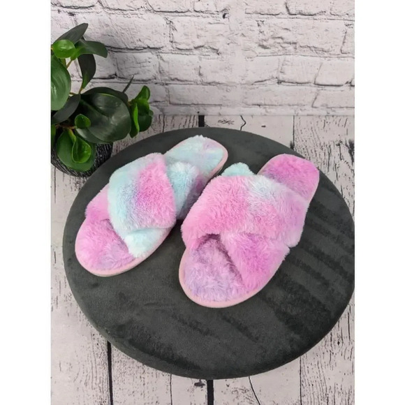 NEW Plush fuzzy colorful slide style slippers, EUR 40-41