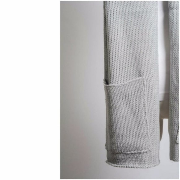 This cozy two-piece scarf set includes a knit scarf adorned with a pocket on each sides and an infinity snood to keep the neck warm. Soft 100% acrylic. Color is light gray. Snood is 17” x 15”. Scarf: 63” x 12.5” Brand new, boutique item.
