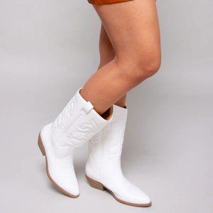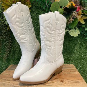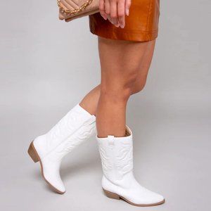 NEW Pointed Toe Embroidered Cowboy Cowgirl Western Mid-Calf High Boot Block Heel