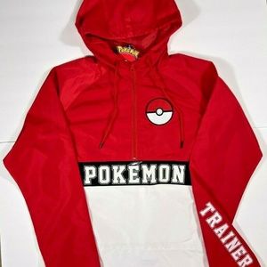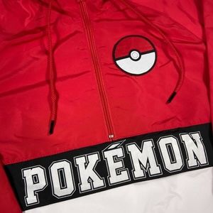 NEW Pokemon Trainer Half-Zip Hooded Anorak Windbreaker Jacket Red White Size SM