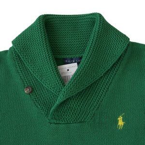 NEW Polo Ralph Lauren Fishermans Shawl Collar Sweater! Green With Yellow Player
