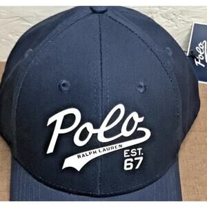 NEW Polo Ralph Lauren Hat Cap Snap Back 67 Script Spellout Navy Blue