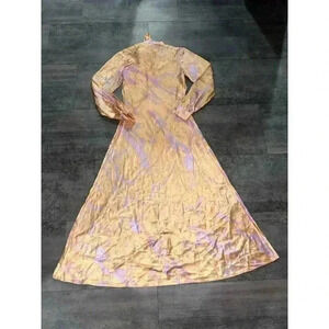 NEW Polo Ralph Lauren Rily 100% Silk Tie Collar Maxi Dress Peach Dye