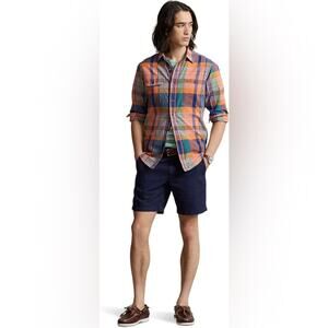NEW with tags Polo Ralph Lauren Straight Fit Cotton-Linen Shorts. Navy blue.