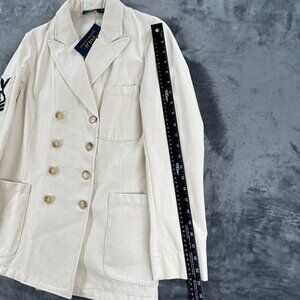 NEW Polo Ralph Lauren White Cream Canvas Twill Nautical Military Blazer Women 2