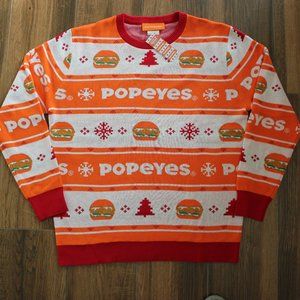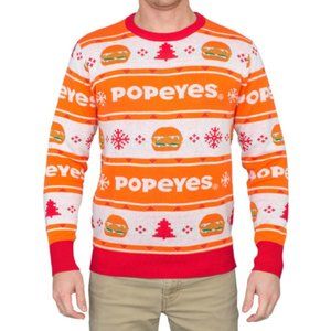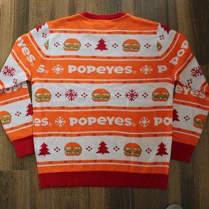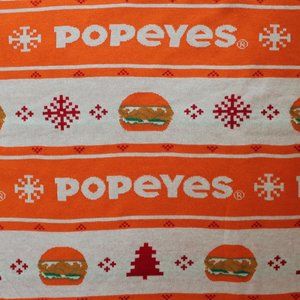 NEW Popeyes Chicken Sandwich Christmas Holiday Orange Sweater