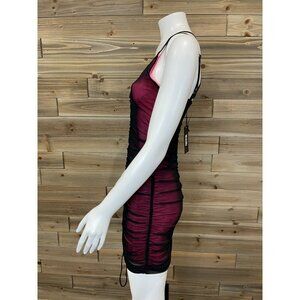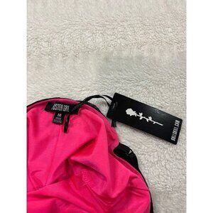 NEW Poster Grl Girl Dolls Kill Swipe Right Mesh Dress Medium Pink Cinch Bodycon