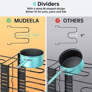 【Deep U-shaped Design】Deep U-shaped Design allows the pot organizer rack for under cabinet to securely hold pans or pots; Perfect kitchen storage solution for organizing both large and small pots and pans.