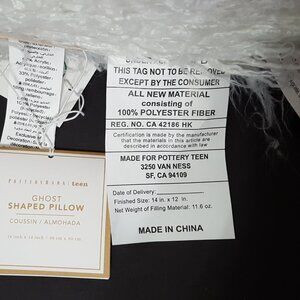 NEW Pottery Barn Teen Halloween Ghost Pillow 12" wide x 14" high
