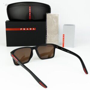 NEW Prada Linea Rossa PS05YS DG050A Black Rubber Brown Rectangle Sunglasses