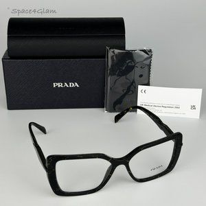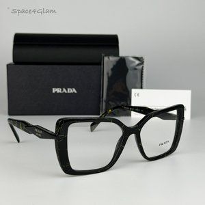 NEW Prada PR03ZV 19D1O1 Black Yellow Marble Cat Eye Women Eyeglasses