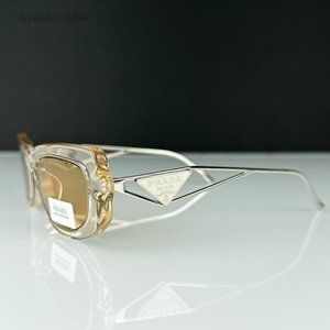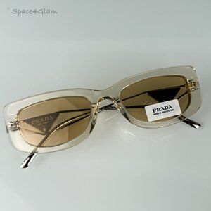 NEW Prada PR14YS 19M4I2 Crystal Beige Light Brown Rectangle Unisex Sunglasses