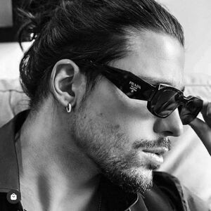 NEW Prada PR17WS 1AB5S0 Black Gray Rectangle Unisex Sunglasses