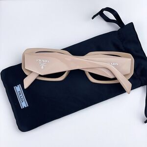 NEW Prada PR17WS VYJ6X1 Powder Beige Brown Rectangle Unisex Sunglasses