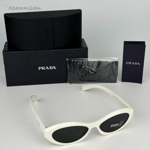 NEW Prada PR26ZS 17K08Z Talc White Dark Grey Oval Unisex Sunglasses