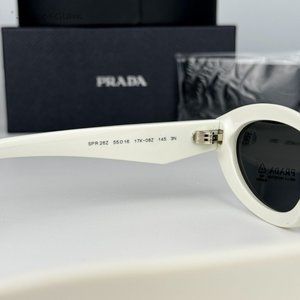 NEW Prada PR26ZS 17K08Z Talc White Dark Grey Oval Unisex Sunglasses