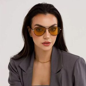 NEW Prada PRA54S 1BO90C Matte Black Yellow Unisex Pilot Sunglasses PR A54S