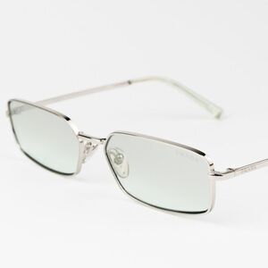 NEW Prada PRA60S 1BC80G Silver Grey Mirror Rectangle Unisex Sunglasses 0PR A60S