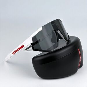 NEW Prada PS04WSF TWK06F White Rubber Dark Grey Rectangle Unisex Sunglasses