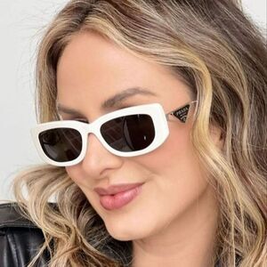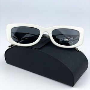 NEW Prada PR14YS 1425S0 Talc Dark Grey Rectangle Women Sunglasses