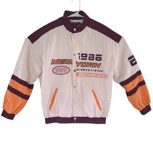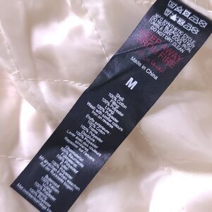 This new Pretty Little Thing oversized racer bomber jacket is a stylish addition to any wardrobe. Made of nylon with a polyester lining, this mid-length jacket features a snap closure and a button accent for a trendy look. Perfect for casual or travel occasions, this off-white jacket in size M is adorned with accents that evoke a biker, retro vibe, making it a versatile piece for the winter, fall, and spring seasons. The oversized fit adds a trendy and comfortable element to this fashionable jacket from the Pretty Little Thing brand.