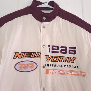 Slogans on the jacket are: New York International 1986 TVR 86 worldwide