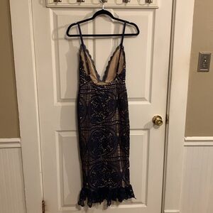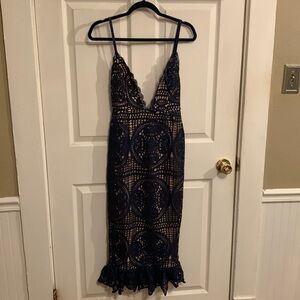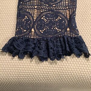 NEW Pretty Little Things Navy Strappy Thick Lace Frill Hem Midi Dress