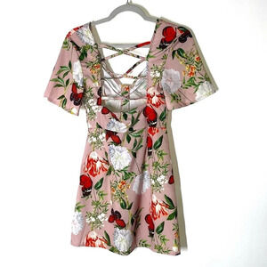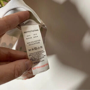 NEW PrettyLittleThing Beige Floral Print Criss Cross Button Bodycon Dress Size 2