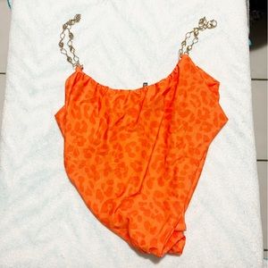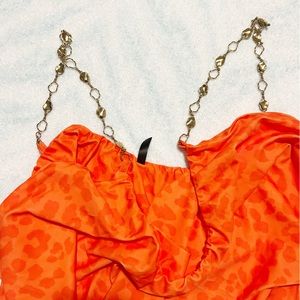 NEW PrettyLittleThing Orange Leopard Print Gold Chain Strap One Piece Size US 24