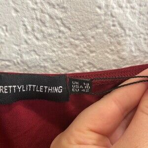 NEW PrettyLittleThing Shape Burgundy Ruched Side Bodycon Dress Size 10