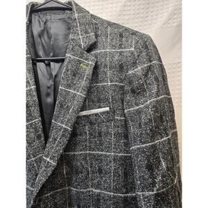 NEW Proper Pair Gray Windowpane Plaid Tweed Blazer Sport Coat Jacket Large 5289
